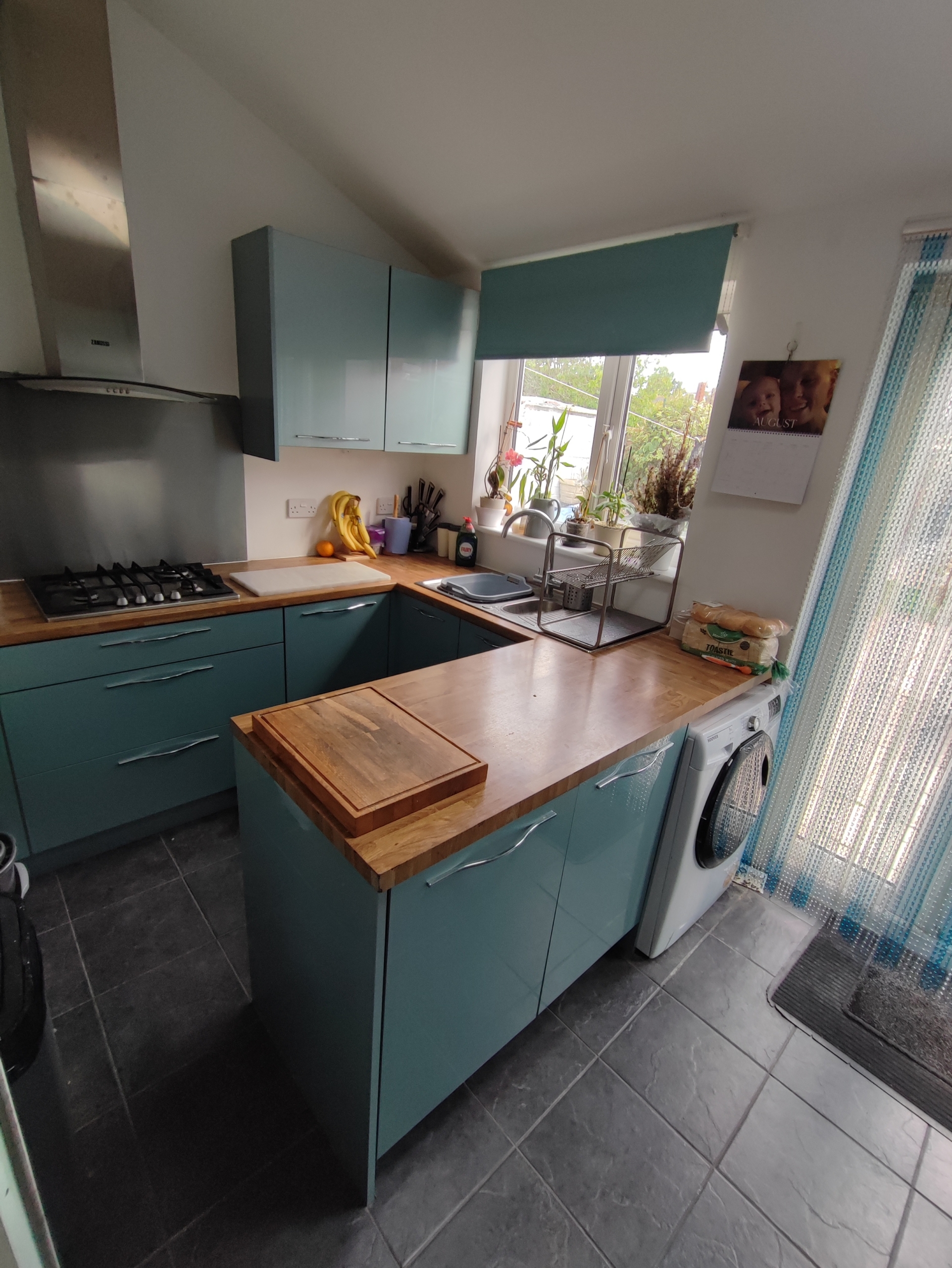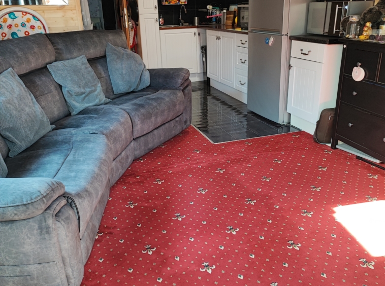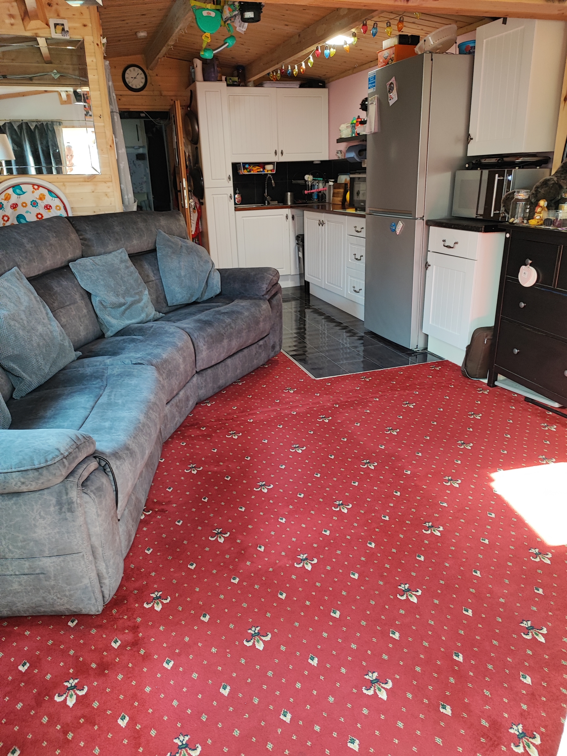 annex lounge/kitchen/diner – (3.76m x 9.25m) Open plan room with l shaped non opening D/G windows for lots of natural light and 2 D/G opening windows, power points , tv Ariel, fitted kitchen with lino floor ,double chrome sink with chrome mixer tap and space for fridge freezer.