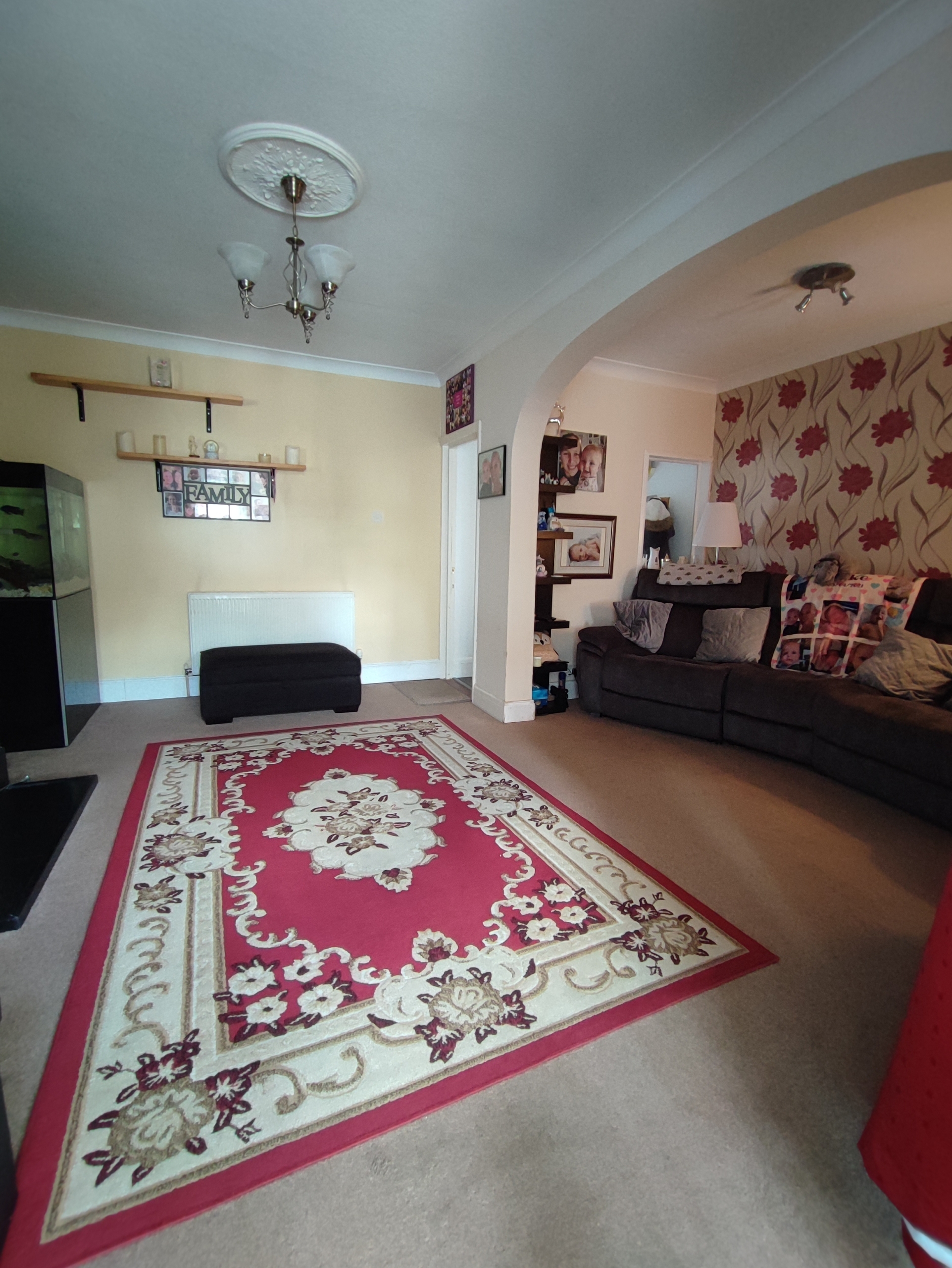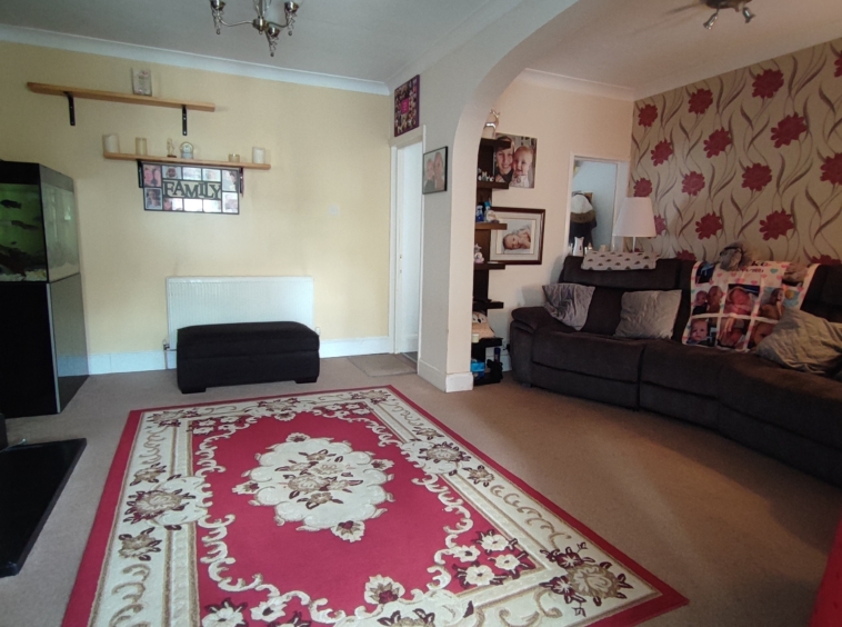 Reception 2 (4.8m – 5.19m Max x 4.38m) Large spacious room with radiator, power points, door to cloakroom/utility and double doors leading to kitchen.